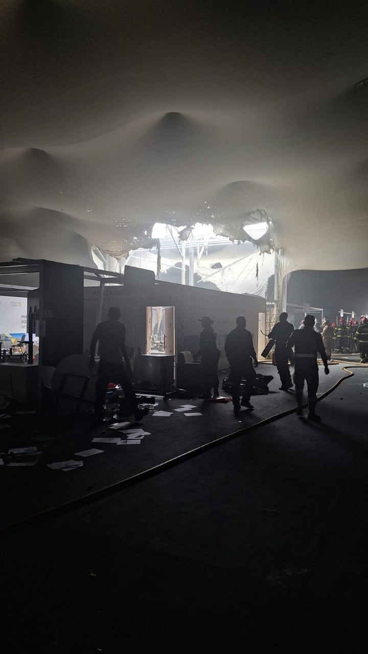 Por conta do fogo, a Blue Zone, que é a área restrita para pessoas credenciadas e destinada para as negociações, foi evacuada, e as pessoas foram direcionadas para a Green Zone; o incêndio já foi contido