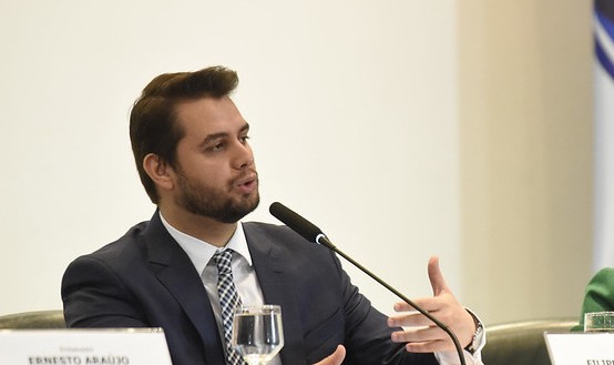 O senador Flávio Bolsonaro (PL-RJ) participou nesta quarta-feira (11) da cerimônia de posse do novo presidente do Chile, José Antonio Kast